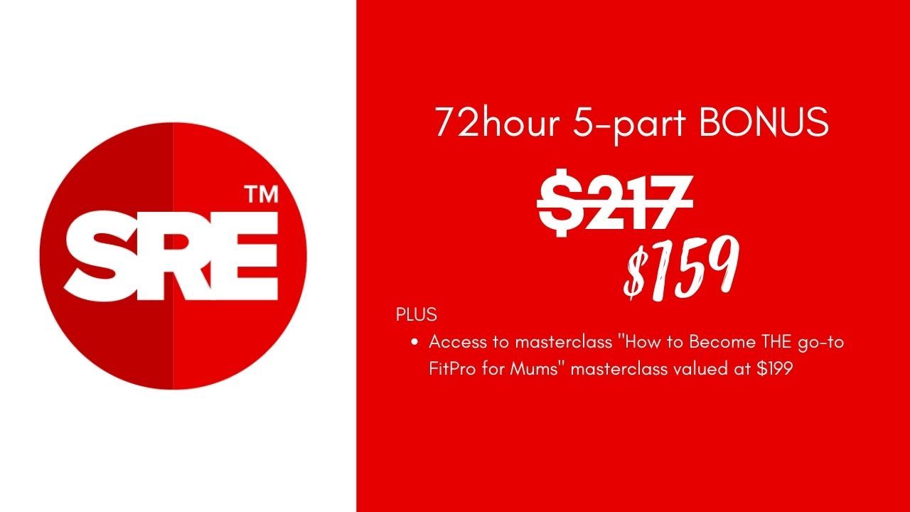 - Access to masterclass "How to Become THE go-to FitPro for Mums" masterclass valued at $199